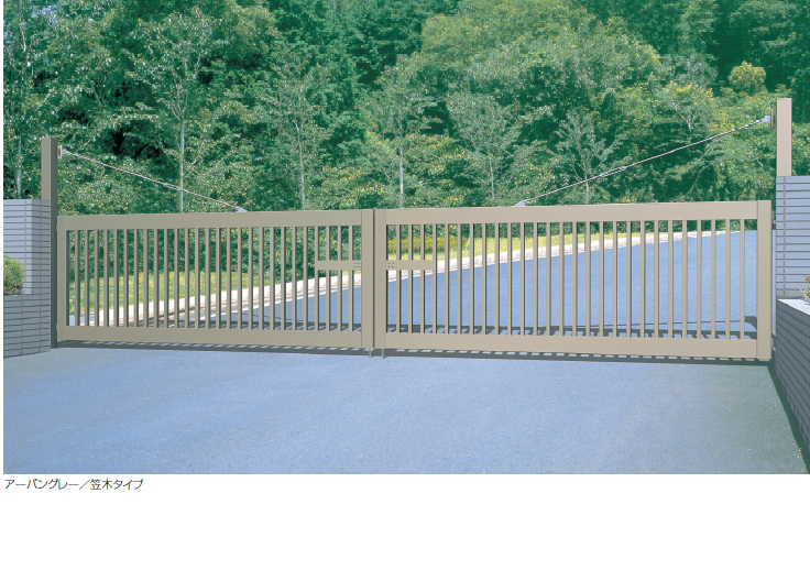 .扉先頭の大型走行ローラーにより、開閉操作もスムーズなノンレールタイプの大型引戸門扉。